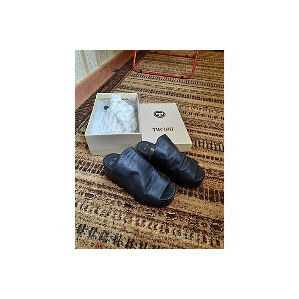 Брендовые, очень крутые и стильные сабо Tucino. Все из натуральной мягкой кожи! Очень удобные!Состояние новых, одеты один раз на выход. По ним абсолютно не видно, что были одеты.