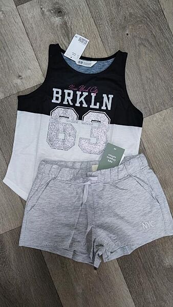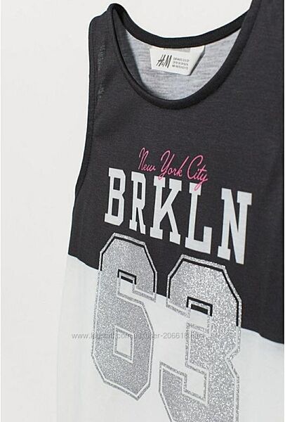В наличии стильные маечки Н&М 🤩украшены глитерным принтом❤️низ майки закруглен 💓 100% полиэстер , лёгкая и приятная к телу , размеры 8-10 лет 134-140 см и 10-12 лет 146-152 см ❤️цена 240 грн
