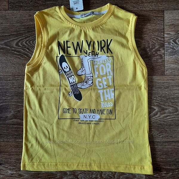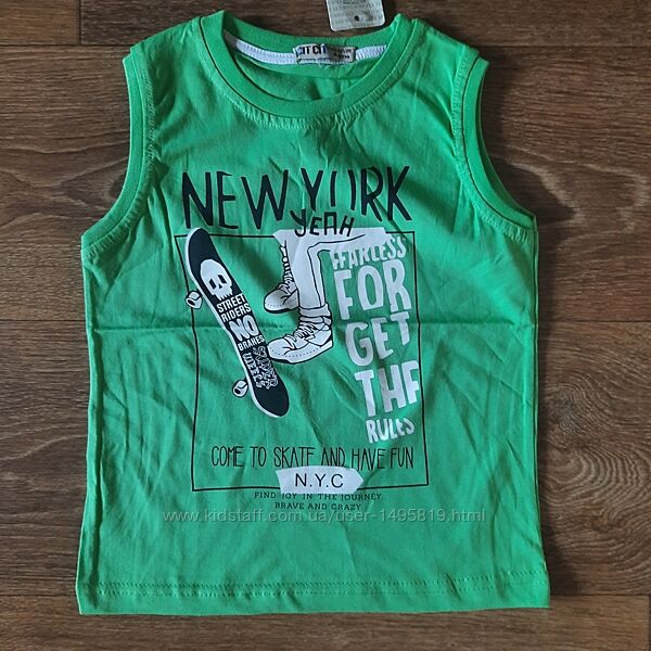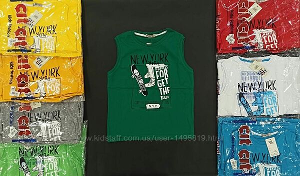 Трикотажные майки для мальчика, производства Турции с красивым принтом, состав 100% хлопок. Размерный ряд 5-8.Цвет желтый, красный, светло зеленый