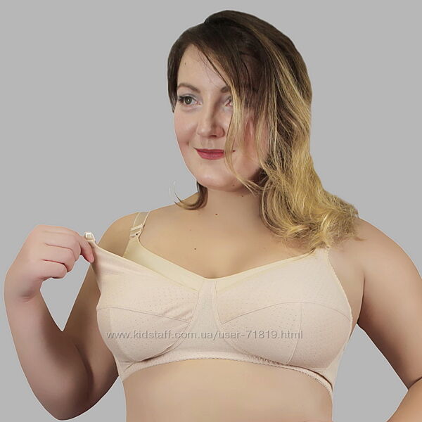 Бюстгальтер для кормящей матери из неэластичного трикотажного хлопкового полотна ажурной структуры и эластичного трикотажного хлопкового полотна. Без каркасов. Мягкие чашки на подкладке из неэластичного трикотажного хлопкового полотна. Отстегивающиеся детали. Дополнительные корректирующие детали из ламинированного неэластичного трикотажного хлопкового полотна.Наличие размеров и цветов уточняйте.