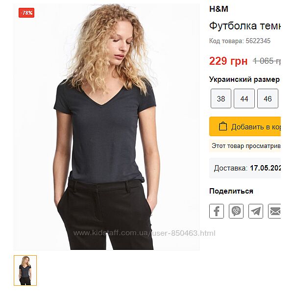 Подробное описание: H&M Швеция Женская хлопковая футболка