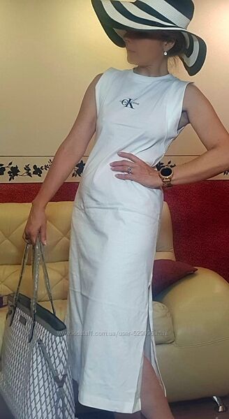 Organic Cotton Monogram Logo T-shirt Dress. Очень красивое и стальное платье Calvin Klein. 100% и безусловный ОРИГИНАЛ Размер XS. Замеры: д лина по спинке - 107 см, ПОГ - 40 см С одного боку есть секси-разрез. Комфортное, приятная натуральная ткань, свободный крой. С лого на груди Прекрасный вариант для пляжа, дома, отдыха... 100% органический хлопок