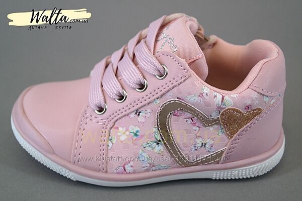 Фирма American Club (Польша) . Качественная обувь за доступной ценой. Стильные розовые с бабочками и сердечками кроссовки. Верх мягкий, стойкий плотненький задник. Не тяжелые, подошва тпр. На шнуровке+замочек сбоку. На передке защита от сбивания!цвет: розовый