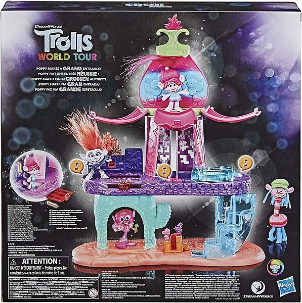 Діти можуть собі уявити, що вони влаштовують епічне музичне шоу, яке поєднує всі музичні світи DreamWorks Trolls World Tour разом із сценою Blooming Pod Stage, включаючи ляльку DreamWorks Poppy та 3 різні пісні.