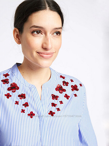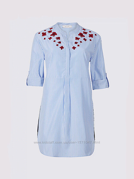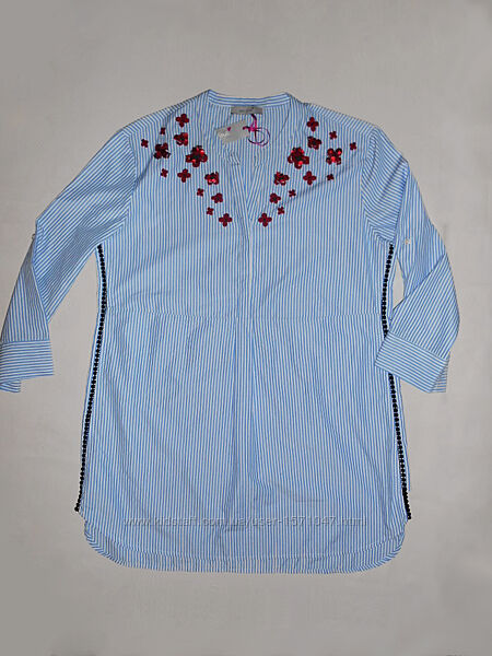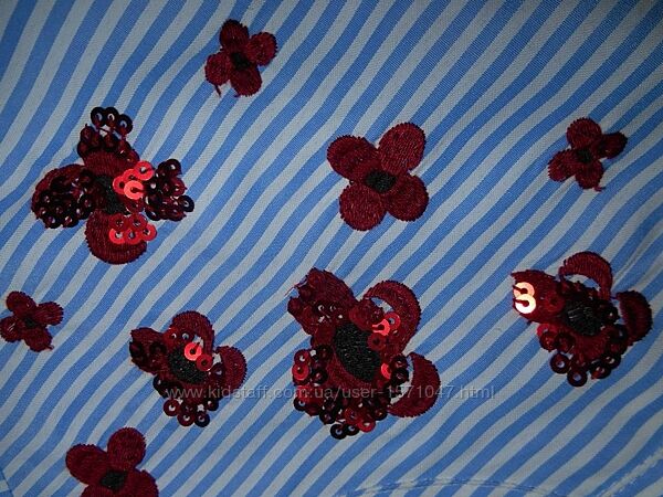 Рукав трансформер, впереди потайная супатная застежка, вышивка с паетками, кружево в боковых швах.