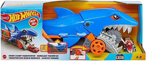 Ця збільшена версія легендарного автомобіля з гарячими колесами, укус акули, має відомі риси улюбленого дітьми заклятого ворога – з´їзд на задню частину автомобіля відправляє машини у нову пригоду.
