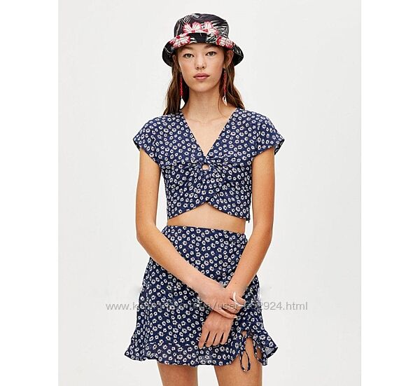 Европейское качество!Трендовый кроп-топ оригинального кроя в ромашки, Pull&Bear.
