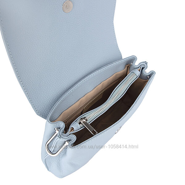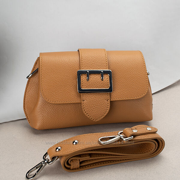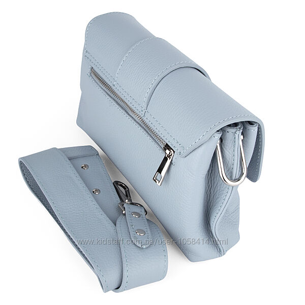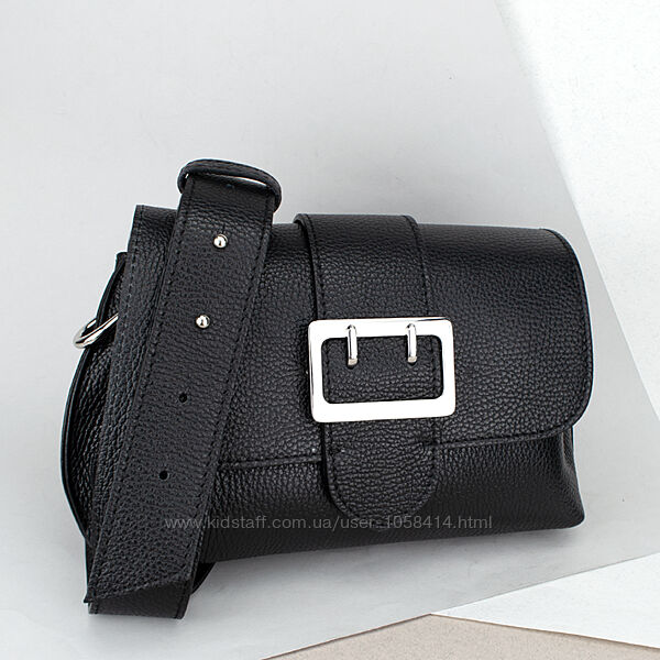 Жіноча сумка-клатч з натуральної шкіри застібається клапаном із декоративною пряжкою на магніті.Аксесуар має два відділення під клапаном, усередині прихована кишенька на блискавці. У сумці можна розмістити невеликий гаманець, телефон, блокнот формату А6, ключі, навушники, паспорт.