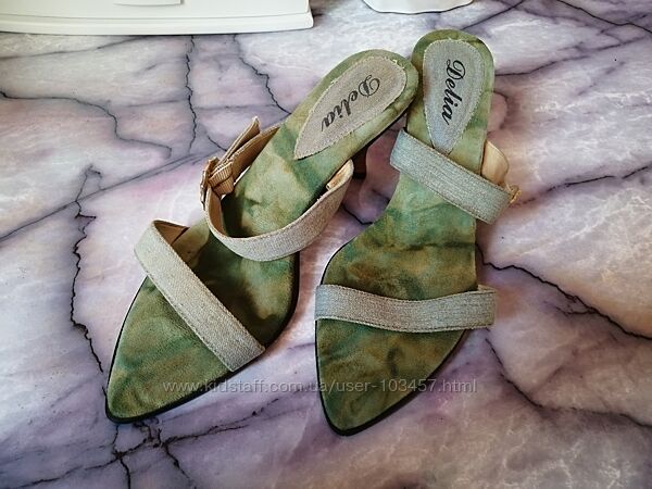 Новые босоножки на шпильках. Очень эффектные, с двумя джинсовыми перепонками. Размер 37. Высота шпильки 7,5 смЕсть ньюанс - немного различаются по цвету перепоночки, можно подкрасить раствором синьки, в цене учтено.