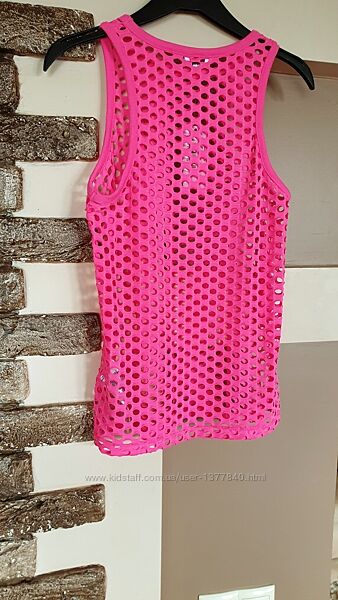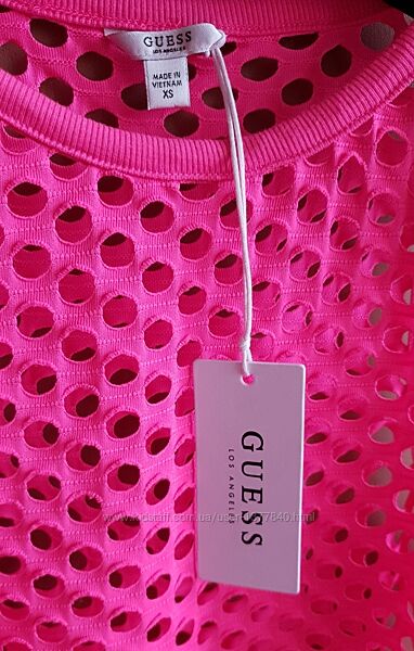Модная розовая майка топ GUESS. Оригинал! Новая. Размер Xs (подойдёт и на S).Очень приятная к телу мягкая стильная сексуальная маечка с флуоресцентным эффектом, перфорированная ткань.