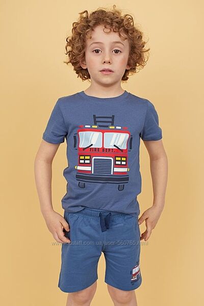 Бавовняні трикотажні шорти H&M для хлопчика з пожежною машиноюРозміри: