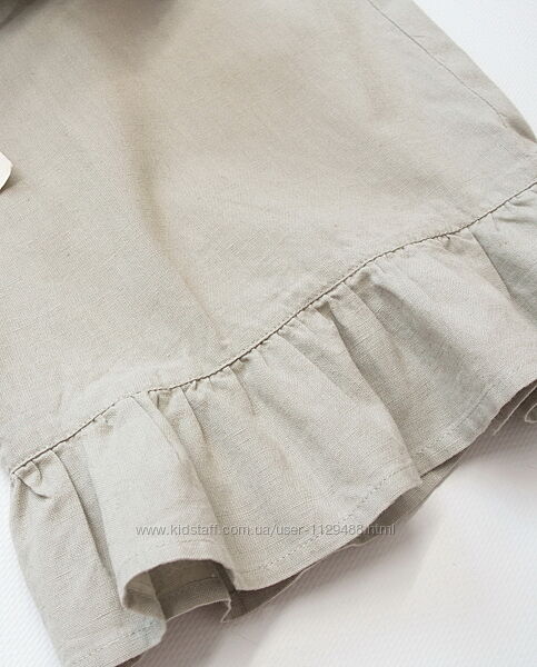 Модель актуальная, с широкими штанинами, выполнен из натуральной дышащей ткани, в боковых швах карманы, штанины по низу декорированы кокетливым рюшем. Носить можно как самостоятельную вещь, можно на топ или футболку.