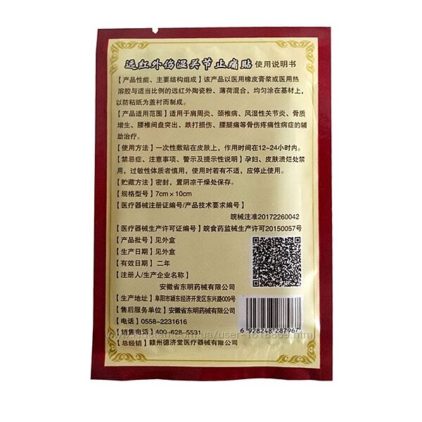 • Упаковка-8 штук пластырей