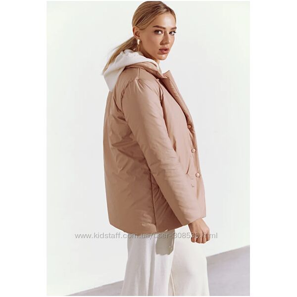 Благодаря универсальному бежевому оттенку, куртка подходит для образов в любой цветовой гамме. Изделие с отложным воротником и небольшими лацканами сшили из плащевого материала. Слой внутреннего утеплителя поддерживает комфортную температуру в прохладную погоду, почти не утяжеляя вещь и не создавая излишний объем. Модель дополнили прорезными карманами с клапанами спереди и съемным поясом.