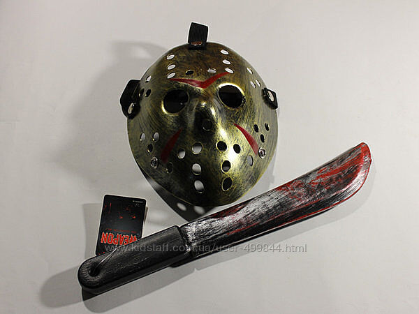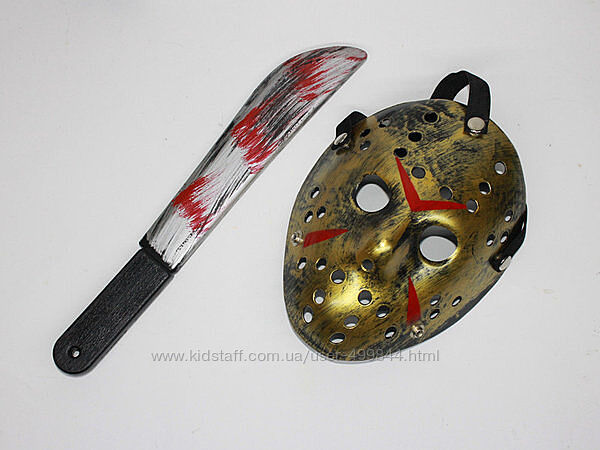 Набор маска Джейсона Пятница 13 и большого ножа тесак-мачете длина 39 см материал: маска пластик, нож тесак пластмассовый.Отправляем Новой почтой после оплаты на карту.