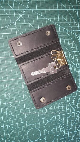 Ключница из натуральной кожи (крейзи хорс), на 4 карабина. Ручная работа. Размер 11 × 6 см. Прошита вощеной нитью.Другие объявления продавца