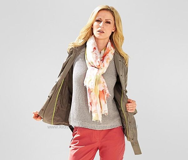 Фирменная куртка- тренч от немецкого производителя Tchibo. Идеально подходит для холодных дней. Благодаря верхнему материалу с нежным блеском, воротником-стойкой и кокеткой, куртка не только отлично выглядит, но и отвечает самым высоким требованиям с точки зрения функциональности. Водоотталкивающий и грязеотталкивающий материал с легким блеском. Со стоячим воротником и съемным широким регулируемым поясом для идеальной посадки. С 2-полосной застежкой-молнией и двойной ветровой планкой с защелками. 2 накладные карманы для груди и карманы с защелками, 1 внутренний карман на молнии. Рукав с небольшим разрезом и кнопкой. Съемный поясной ремень. Внутренняя подкладка. Отличное качество.