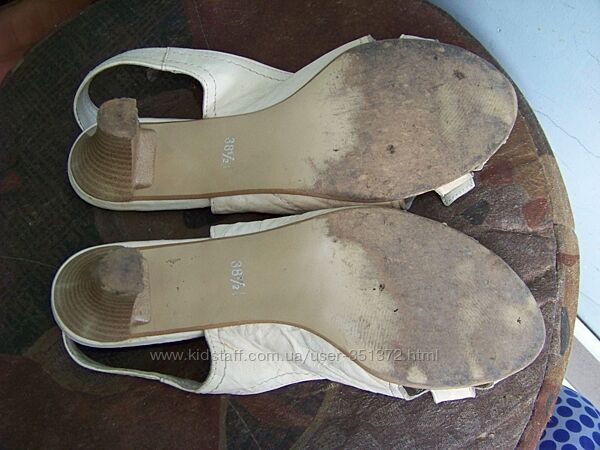 Видео на ютубеБосоножки красивого кремового оттенка. Выполнены из жатой кожи, украшены бронзовыми пряжками. Размер указан 38 с половиной. Длина стельки 25 см. Ширина подошвы в самом широком месте 8.3 см. Каблук 7 см, набойка практически целая, сбита совсем чуть чуть. Из недостатков: потерта стелька немного и подошва спереди, слегка сбиты носочки, но это малозаметно. Состояние близко к идеалу.