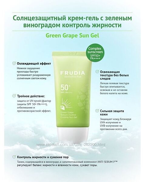 Подробное описание: Сонцезахисний гель з екстрактом винограду Frudia Green Grape Sebum Control