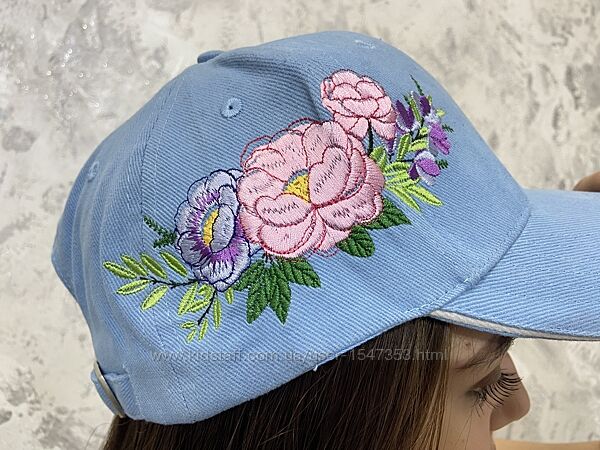 Подробное описание: Вышитая женская кепка бейсболка голубого цвета