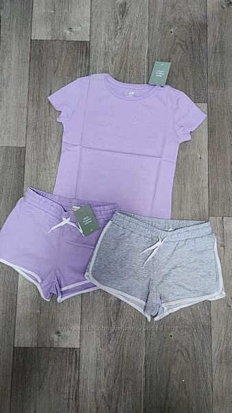 Трикотажные шортики H&M сиреневые и серые девочкам
