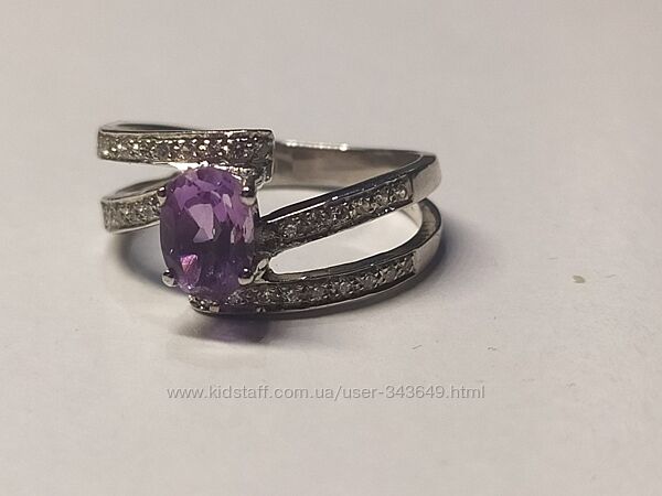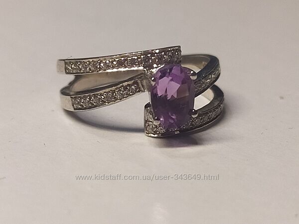 Кольцо серебряное 925 натуральный пурпурный аметист, цирконий.