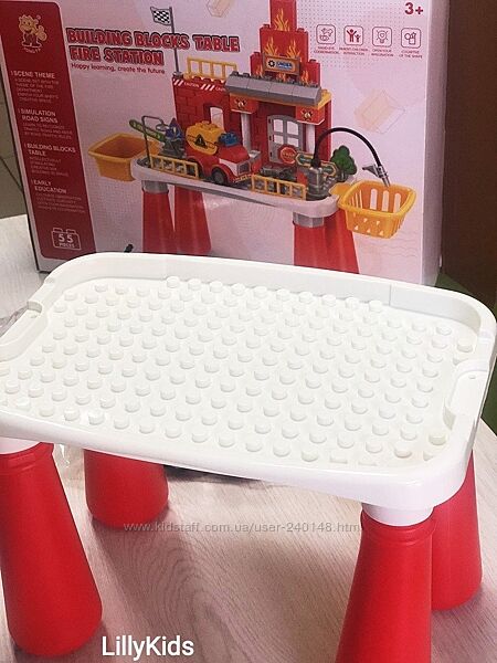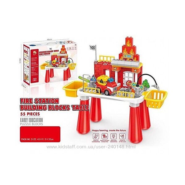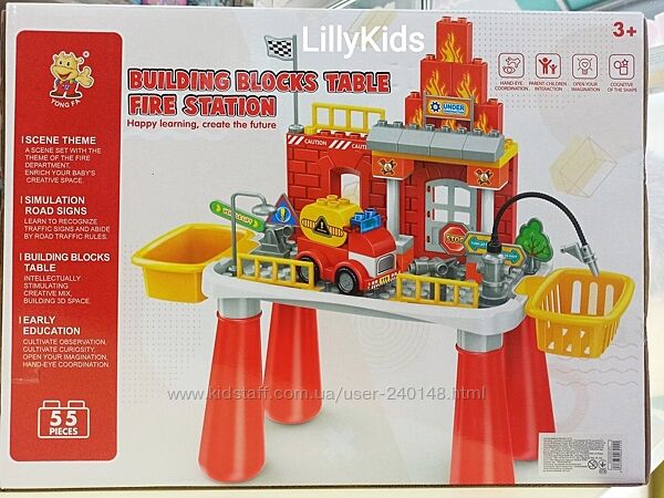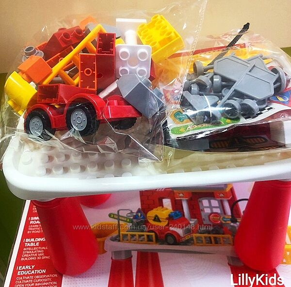Подробное описание: Детский столик 222 - B 78 с конструктором, 55 деталей, машинка, пожарная ст