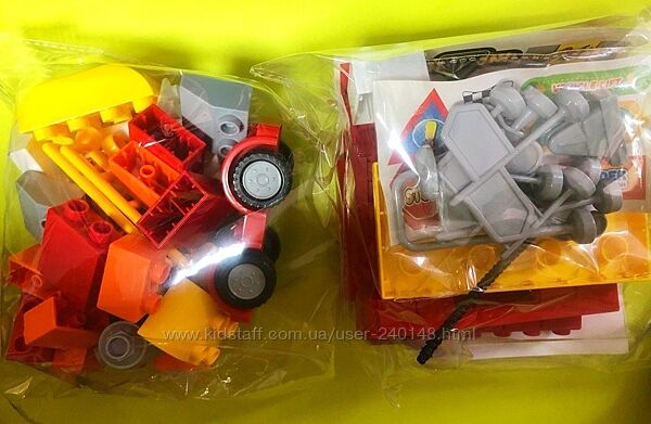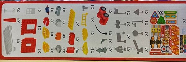 В наборе Вы найдете 55 деталей крупного размера которые включают в себя элементы построек, деревьев, специальных приборов и знаков. Также малыш сможет собрать пожарную машину с обтекаемой конструкцией и дополнить ее яркими наклейками.