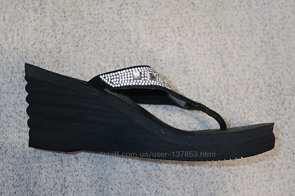 Вьетнамки Skechers оригинал - 37 размер, по стельке - 24 см. Подошва - пена. Очень мягкая стелька - Yoga Foam. Снаружи - текстиль, внутри - текстиль. Стильные, очень легкие, мягкие и удобные. Ширина по стельке в самом широком месте - 9,5 см. Высота каблука - 8 см. Отличное состояние. Цена - 250 грн.