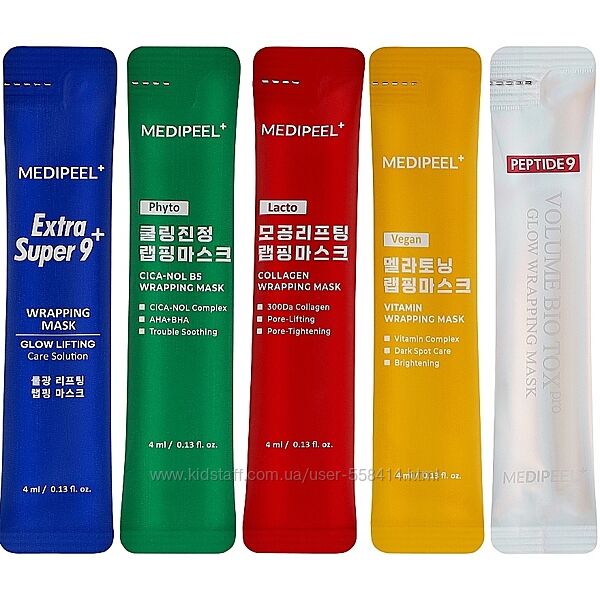 Подробное описание: Набір мініатюр масок для обличчя MEDI-PEEL In My Pocket Wrapping Mask