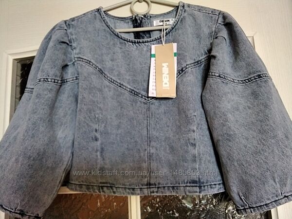 Новая джинсовая блуза с рукавами буф, р. 46-48 наш.