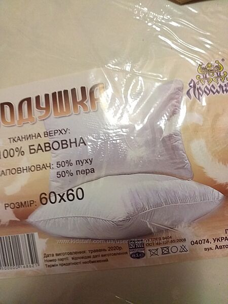 Подробное описание: Подушка пуховая 50 пуха 50 перо размеры ТМ Ярослав