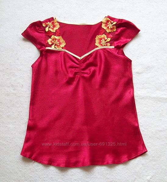 Предлагаю симпатичную атласную пижаму. Б/у аккуратно, состояние очень хорошее, есть одна зацепка на штанине, смотрите фото.Размер указан М. Мерки: верх - длина от плеча до низа 58 см, ширина груди подмышками 42 см. Штаны - длина по боку 62 см, ширина талии 25 см, тянется до 45 см, ширина бедер 56 см.