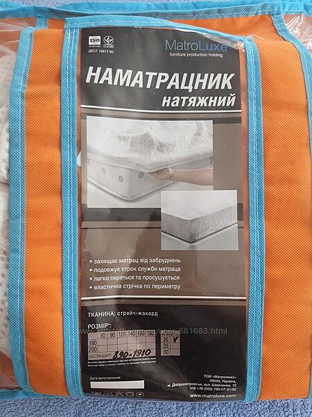 Новий натяжний наматрацник ТМ Matroluxe.Розмір вказаний 89×198 см, але підійде і на 90×200.