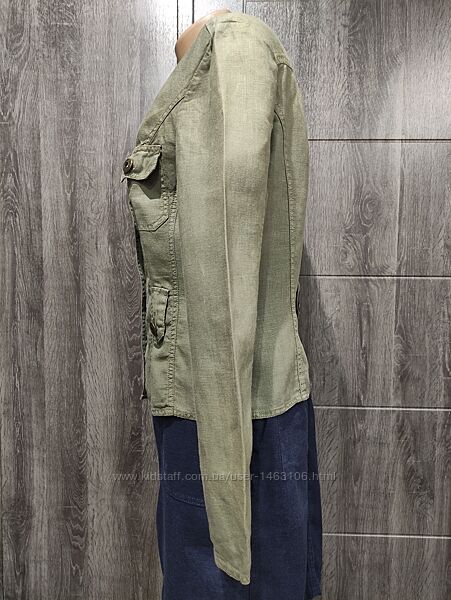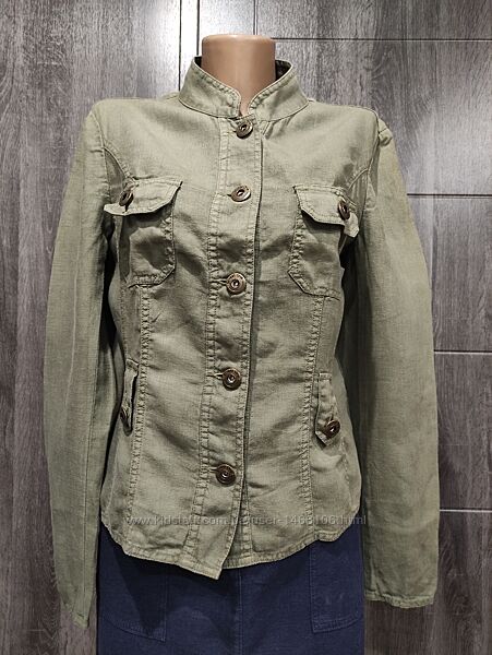 Превосходный льняной пиджак цвета хаки бренда Street One из 100% льна. Состояние идеальное!Размер UK 10, Euro 36. Внимательно смотрите замеры: