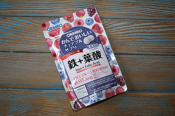Восполнить недостаток железа в организме поможет японский комплекс витаминов Orihiro Iron+Folic Acid в виде жевательных конфет. Препарат обладает приятным вкусом и ароматом ягод.
