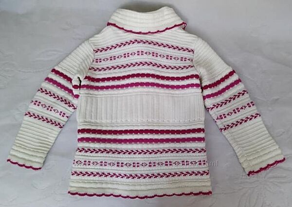 Кофта вязанная р.34 рост 128-134 белая с красным узором