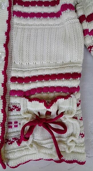 Подробное описание: Кофта вязанная р.34 рост 128-134 белая с красным узором