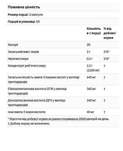 Омега-3 жирні кислоти — це один із різновидів корисних жирів, які містяться в багатьох рибних джерелах і які організм може використовувати для підтримки різних функцій. Риб’ячий жир преміальної якості з омега-3 від California Gold Nutrition містить кілька омега-3 жирних кислот, зокрема ДГК та ЕПК, які можуть допомогти вам отримувати достатню кількість цих поживних речовин щодня, підтримуючи здоров’я багатьох систем організм.