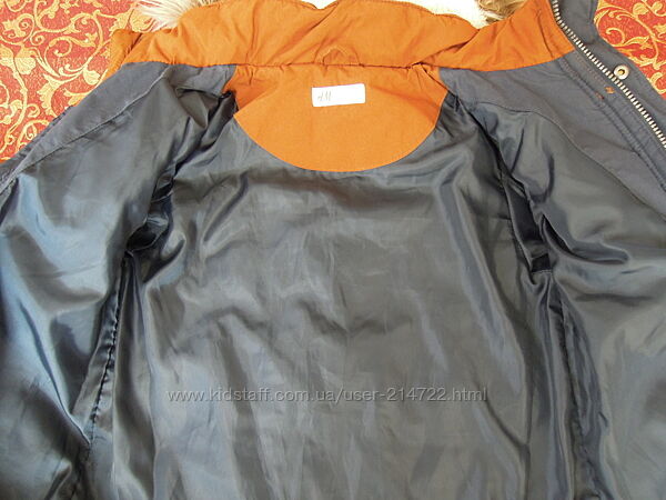 Продам классную демисезонную курточку моего сыночка фирмы H&M(заказана с оф сайта). Размер 7-8 лет, но большемерит. Состояние идеальное, была одета несколько раз так как прогадала с размером(оказалась большой). Курточка очень теплая и удобная, можно смело носить даже на несильные морозы. Не продуваемая ветром. Цена - 400 грн(Без торга, так как с весом обошлась дороже)Замеры: Длина по спинке - 55 см, ширина под мышками - 43,5 см. Длина рукава от капюшона - 57 см, от плеча - 47 см, от подмышки - 36 см.