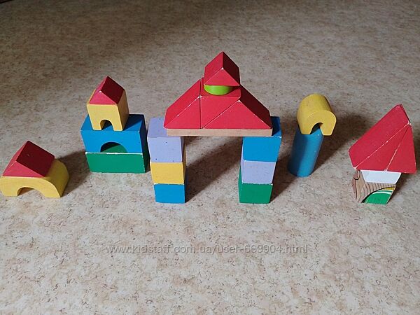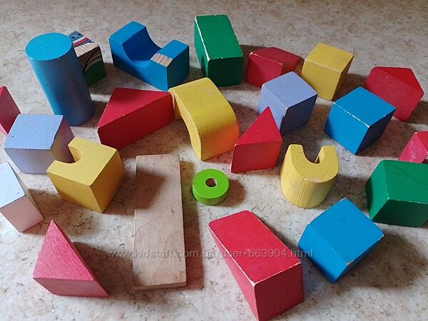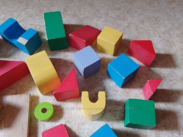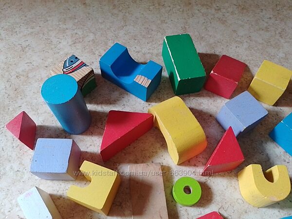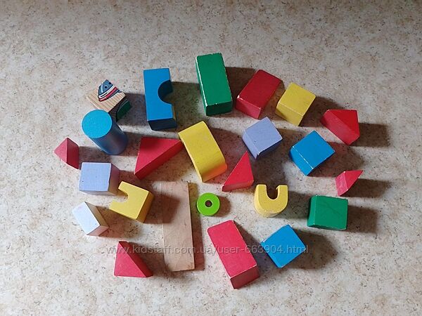 Деревянные кубики разных форм. Помогают ребёнку развивать образное мышление и мелкую моторику рук.В наличии 24 разных кубика. В пересчёте цена каждого выходит около 10 грн.