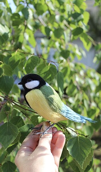 Синиця валяна іграшка з шерсті інтерєрна птичка. Дуже блискуча та приємна на дотик. Висота 11 см, длина 14,5 см. Дзьобик ручної лепки та розпису, кожне пірячко зроблено окремо, лапки на каркасі. Інтерєрна іграшка. Гарний подарунок як дорослому так і дитині, та прикраса вашого інтерʼєру.felting_pets