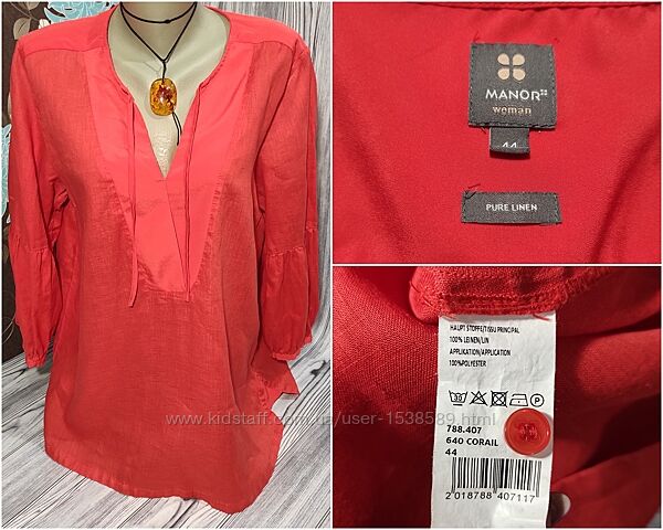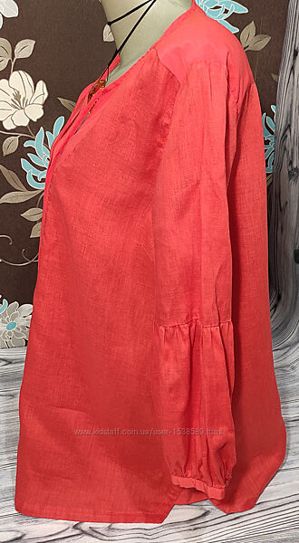Подробное описание: Блузка з льону р.50-52 коралова льонова жіноча блузка сорочка Manor