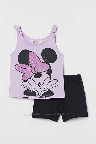 Комплект из майки и шортов из мягкого хлопкового трикотажа. На майке декоративный узел на лямках и набивной рисунок. Шорты на обшитой тканью резинке. Боковые карманы.Количество2