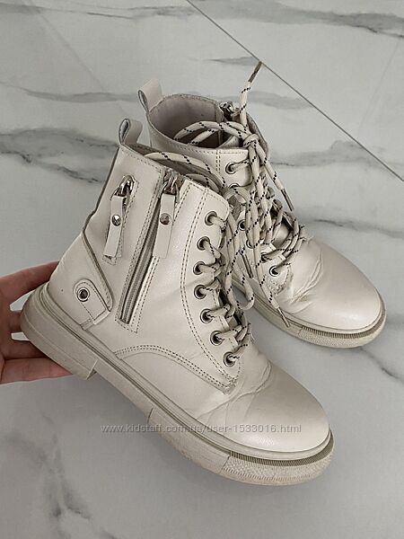 Стильные демисезонные ботинки б/уШикарный дизайн и красивый молочный цвет.