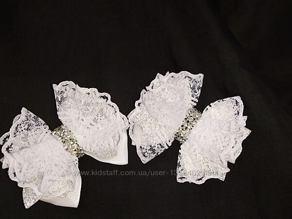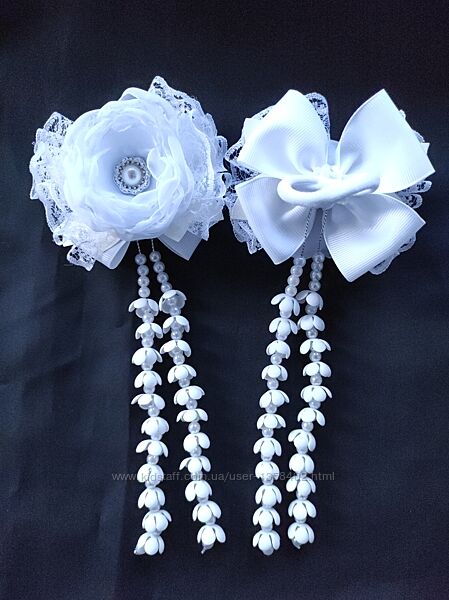 Подробное описание: Бантики на 1 вересня, шкільні бантики, білі бантики сині на резинках