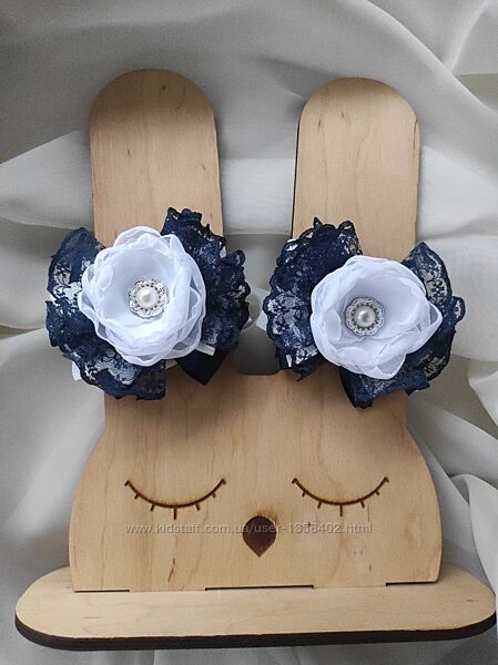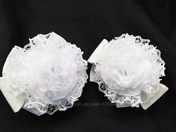 Бантики на 1 вересня, шкільні бантики, білі бантики сині на резинках