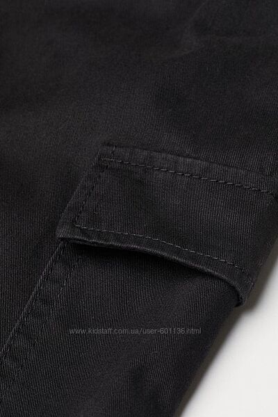 Брюки из хлопкового твила с высокой талией с резинкой и кулиской, а также боковыми карманами и набедренными карманами с клапаном. Зауженные книзу брючины, низ которых собран на трикотажную резинку.