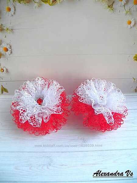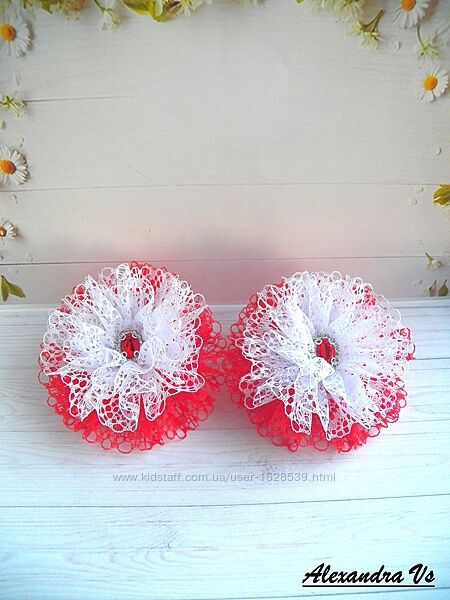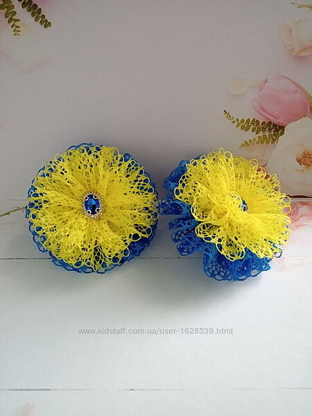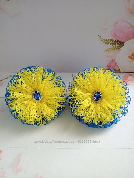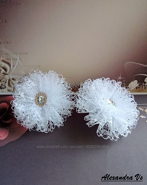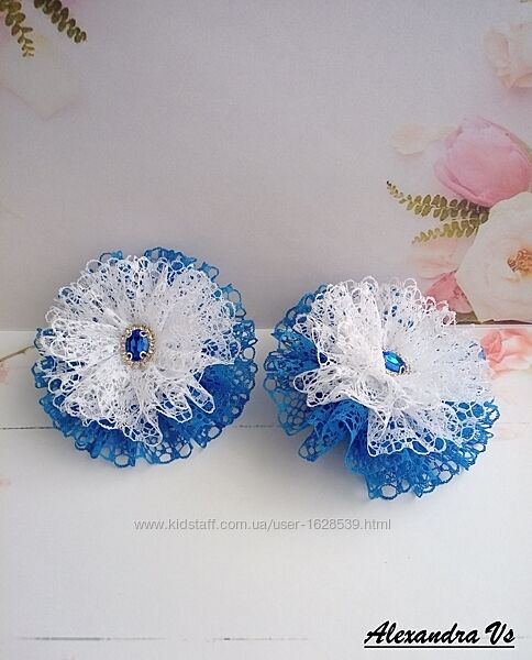 Красивые и нарядные банты в школу из белого и синего кружева. Декор пришит. На праздник или на каждый день. Диаметр банта 9 см. На резинках. В наличии. Цена за пару 160 грн.