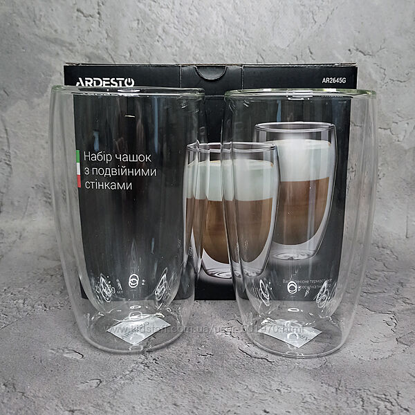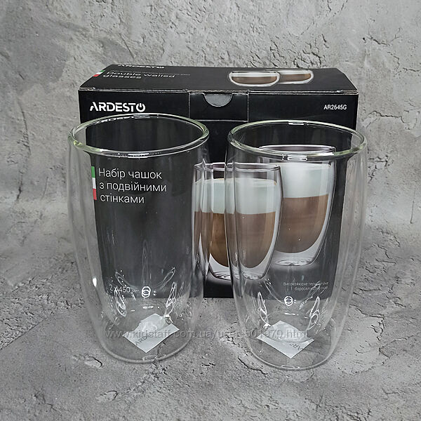 Подробное описание: Набір склянок с подвійними стінками Aredesto 2 шт. 400 мл Акція